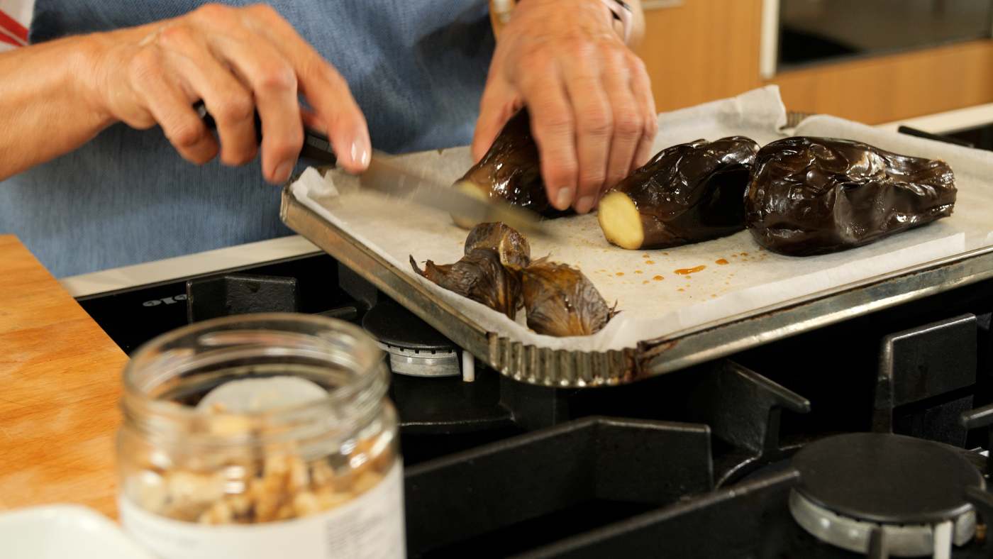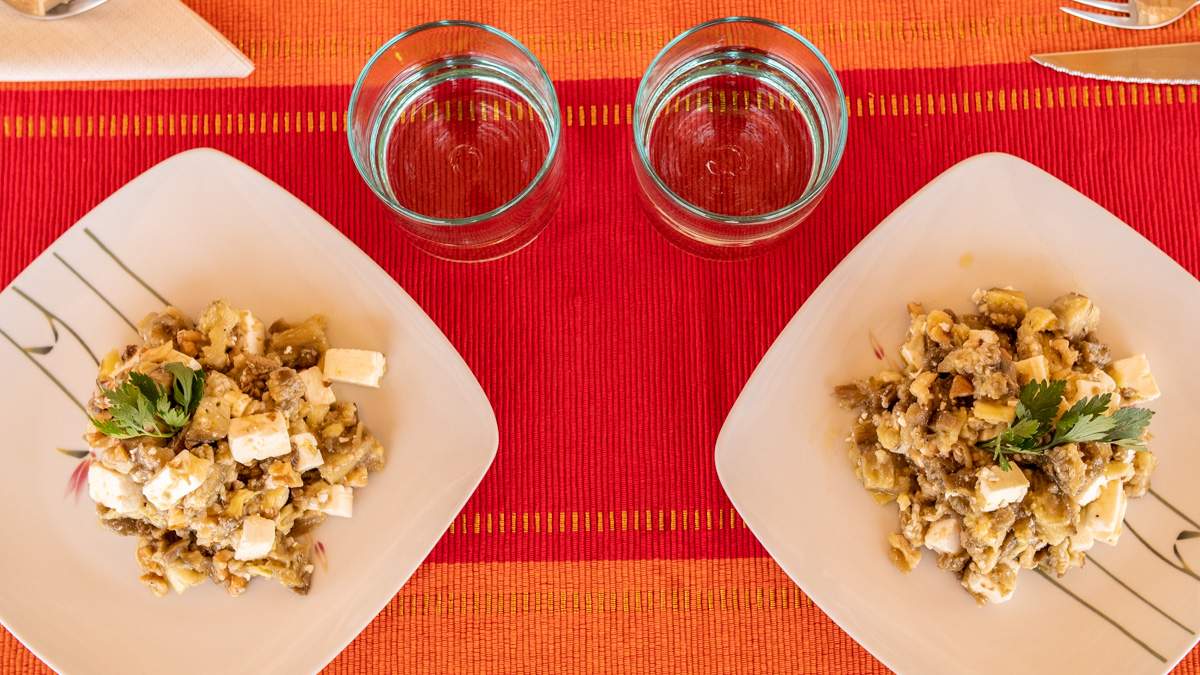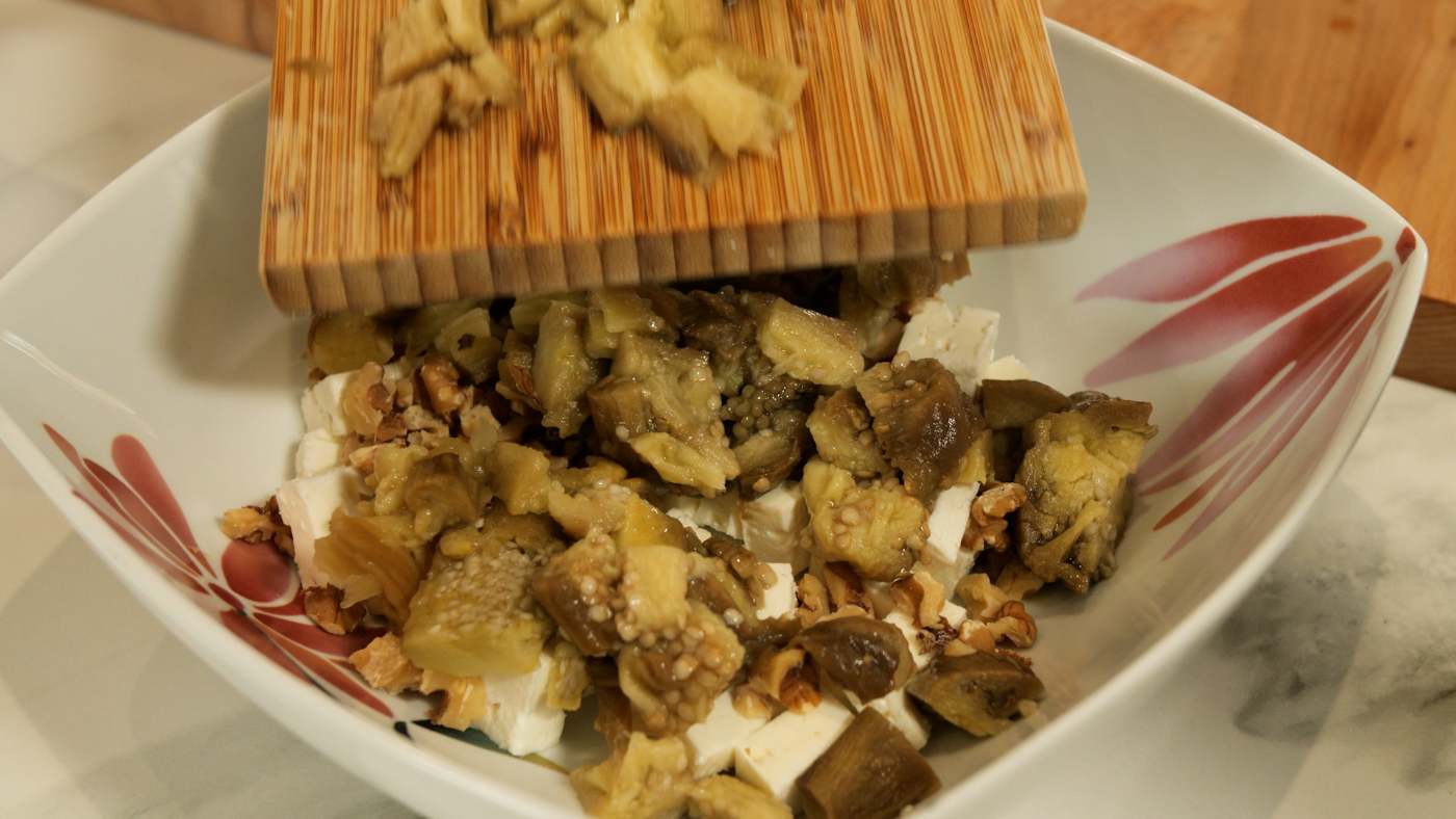 Albergínies torrades amb “Feta” i nous