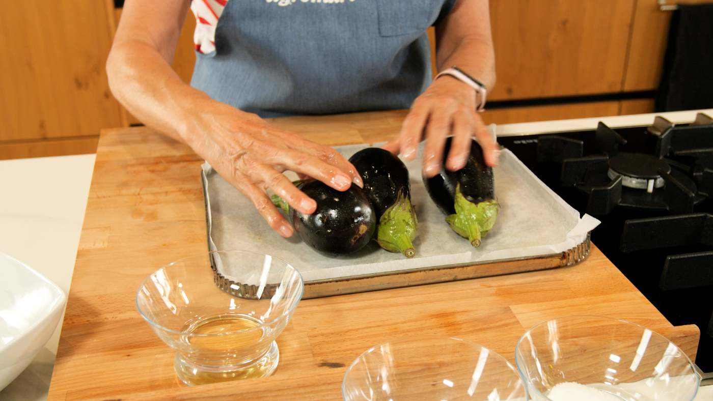1. Renteu les albergínies i eixugueu-les bé.