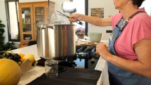 3. Baixau el foc i seguiu remenant. En haver cuit 40′ deixau-la refredar i si vos agrada la textura (en refredar torna un poc més consistent)tornau-la posar al foc i en bollir l’empotau en calent (els pots han d’estar esterilitzats).