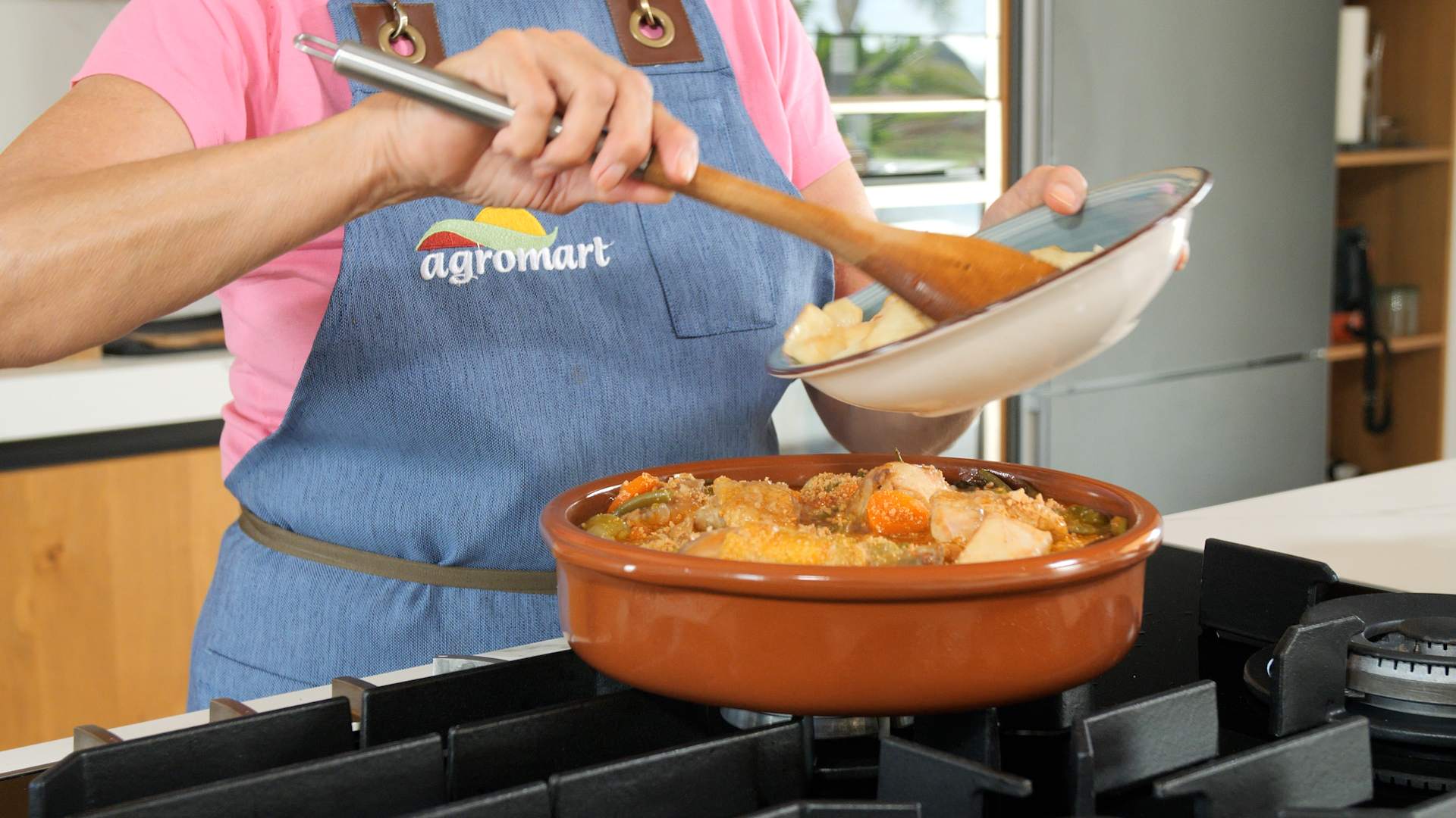 - Ho deixam bollir i hi posam la carn de pollastre reservada, si fa falta afegirem brou, deixam bollir i comprovam el punt de cocció de la carn i si és fat ho posam bé de sal.